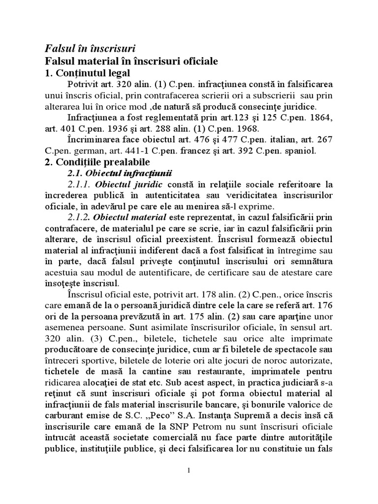 Încriminarea face obiectul art. 476 şi 477 [Link]. italian, art. 267