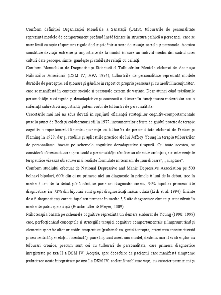 de personalitate, bazate pe schemele cognitive dezadaptative timpurii. Cu toate acestea, se