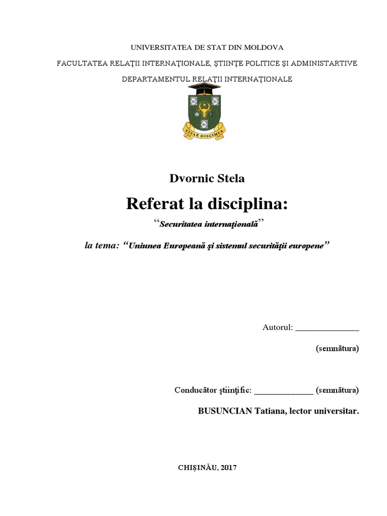 la tema: “Uniunea Europeană şi sistemul securităţii europene”