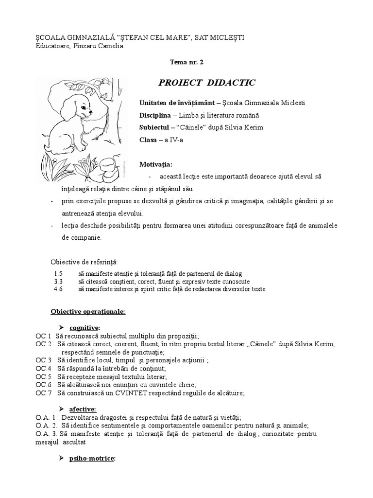 OC.2 Să citească corect, coerent, fluent, în ritm propriu textul literar „Câinele” după Silvia Kerim,