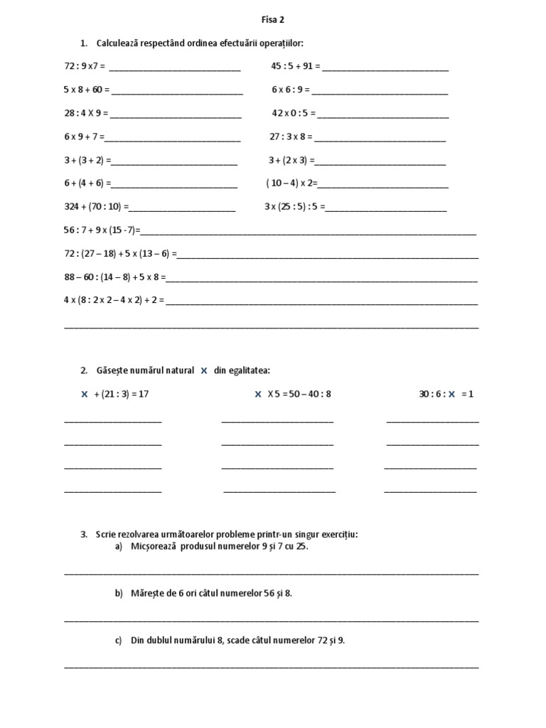 1. Calculează respectând ordinea efectuării operaţiilor: