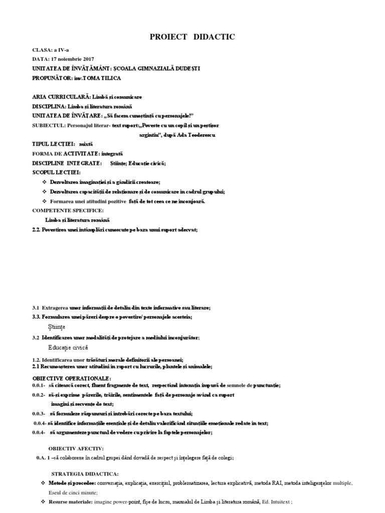 PROIECT DIDACTIC