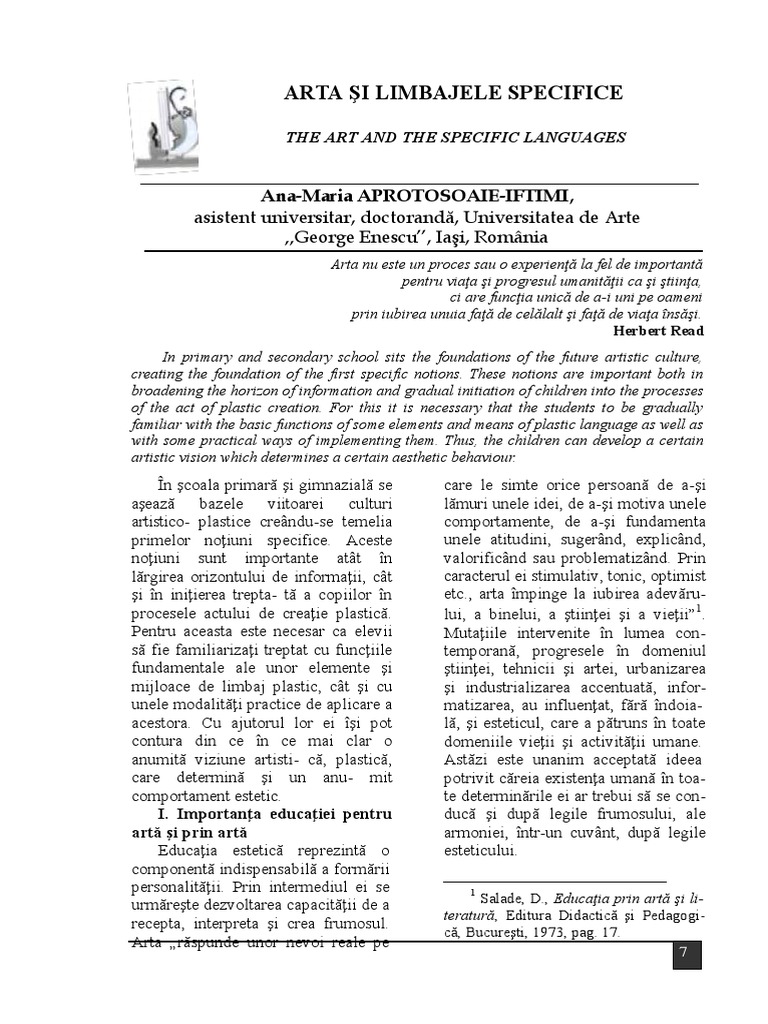urmăreşte dezvoltarea capacităţii de a Salade, D., Educaţia prin artă şi li-
