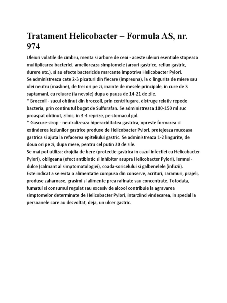 Tratament Helicobacter – Formula AS, nr.