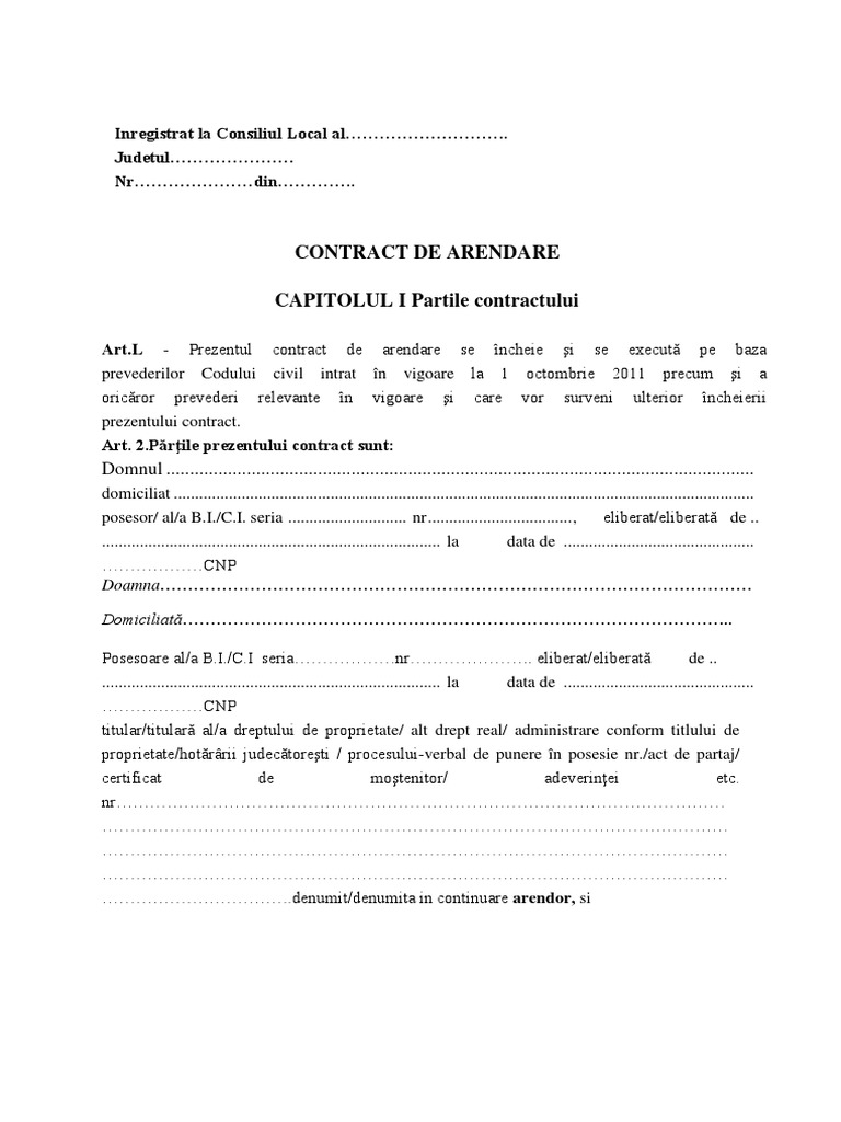 CONTRACT DE ARENDARE