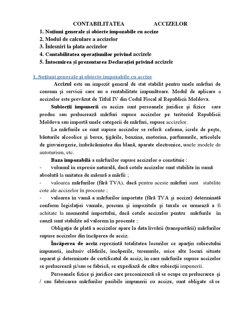 1. Noţiuni generale şi obiecte impozabile cu accize