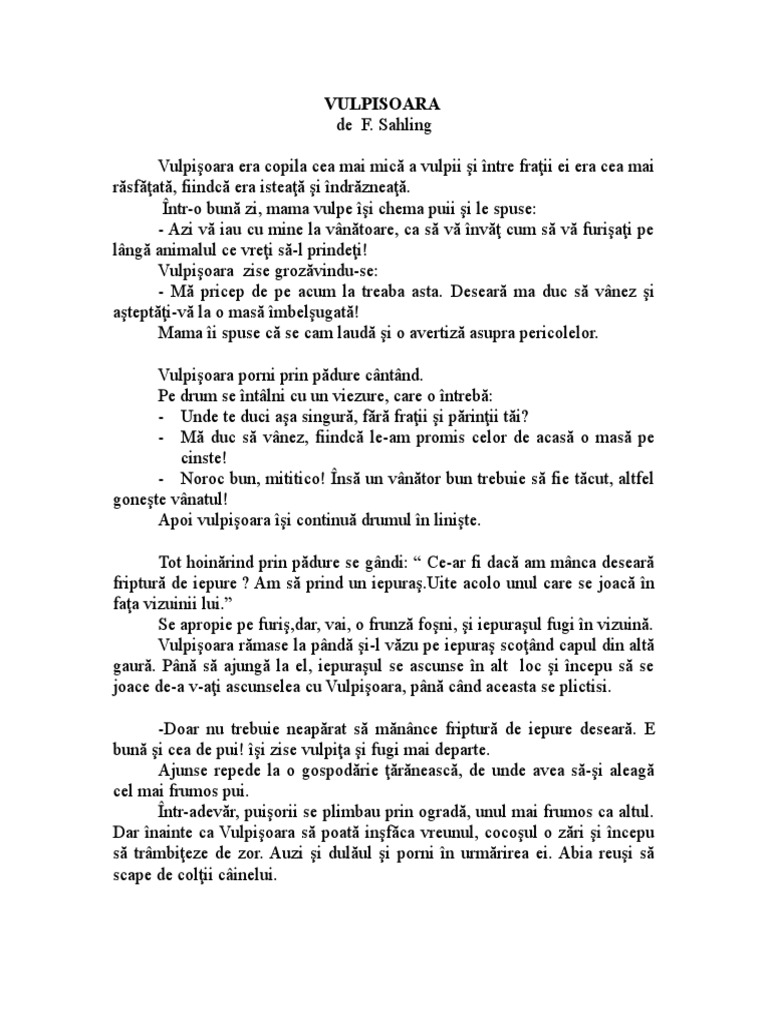 Apoi vulpişoara îşi continuă drumul în linişte.