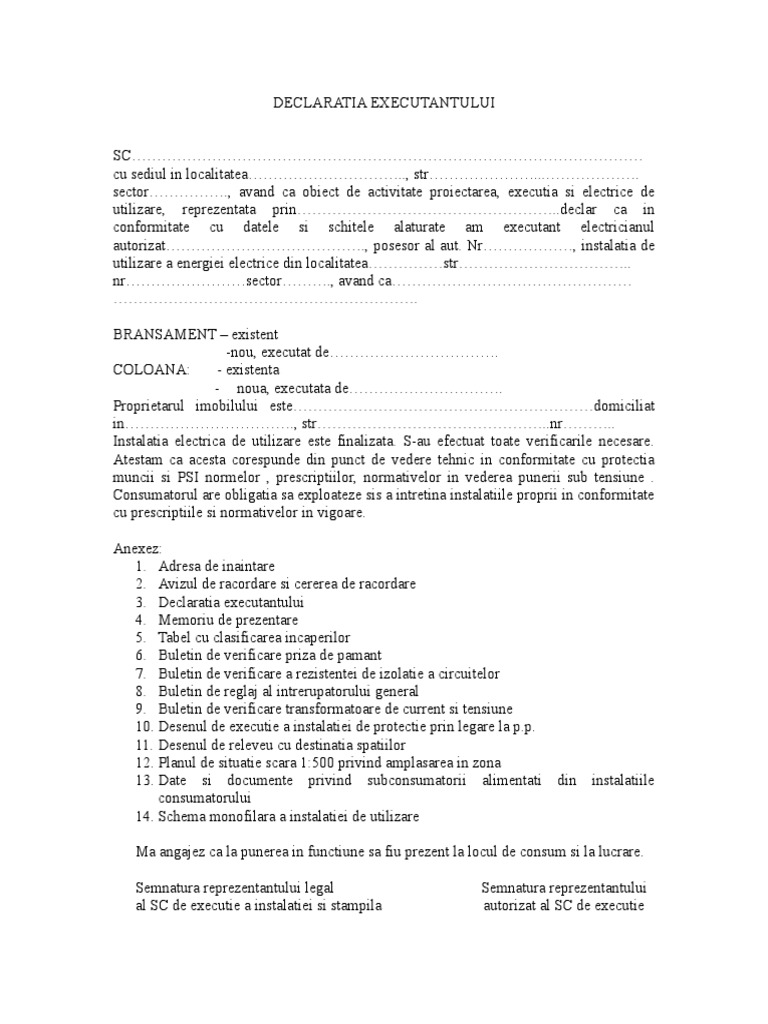 DECLARATIA EXECUTANTULUI