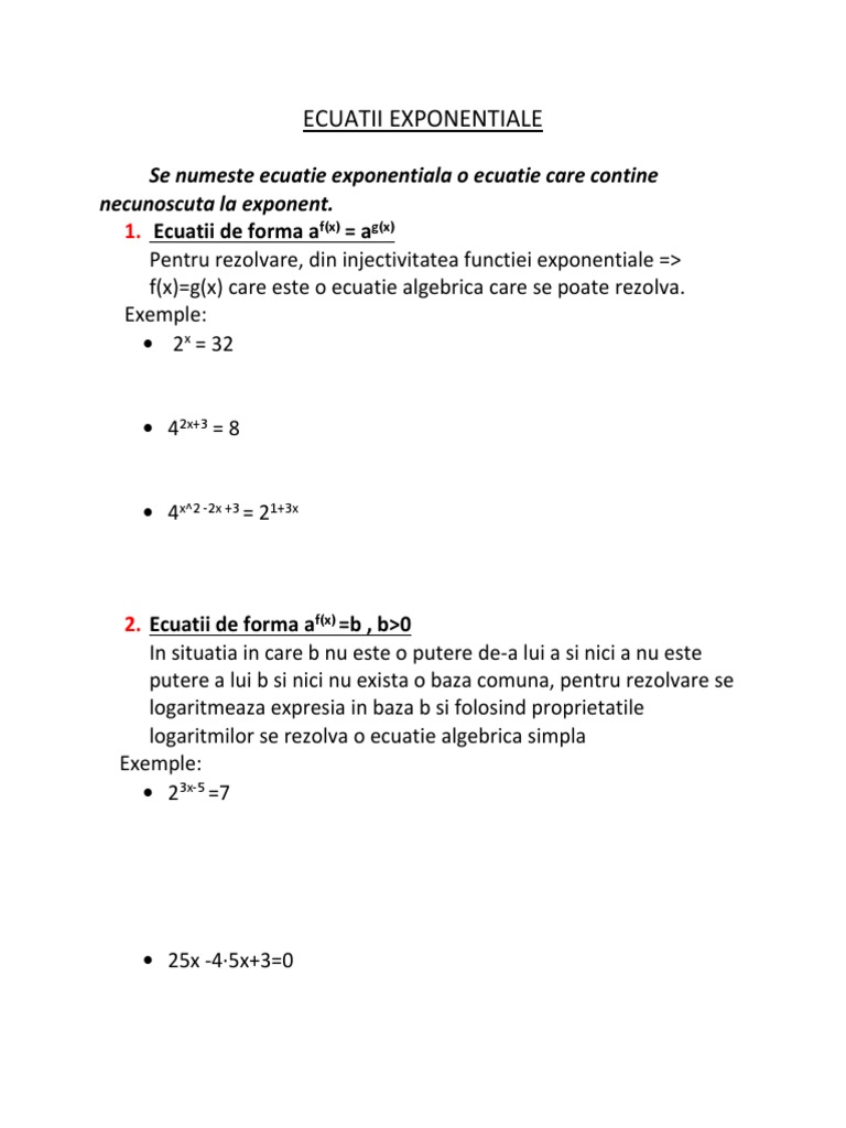 Pentru rezolvare, din injectivitatea functiei exponentiale =>