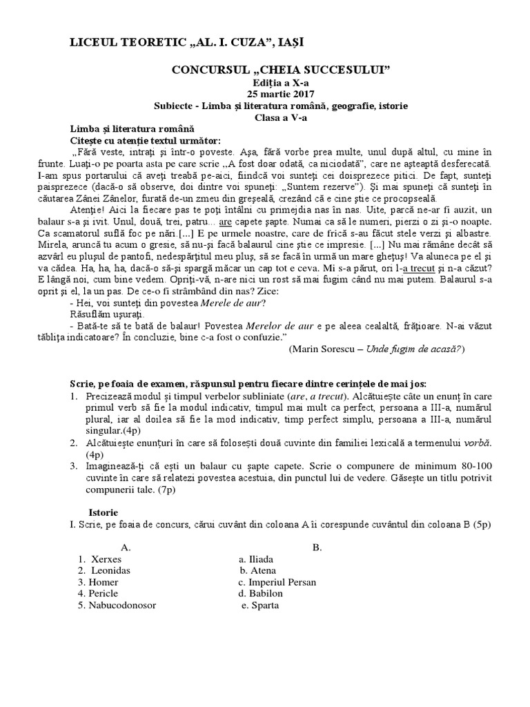 Subiecte - Limba şi literatura română, geografie, istorie