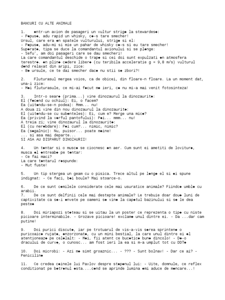 10. Doi microbi: - Azi m� simt groaznic... - ??? - Sunt bolnav! - Dar ce ai? -