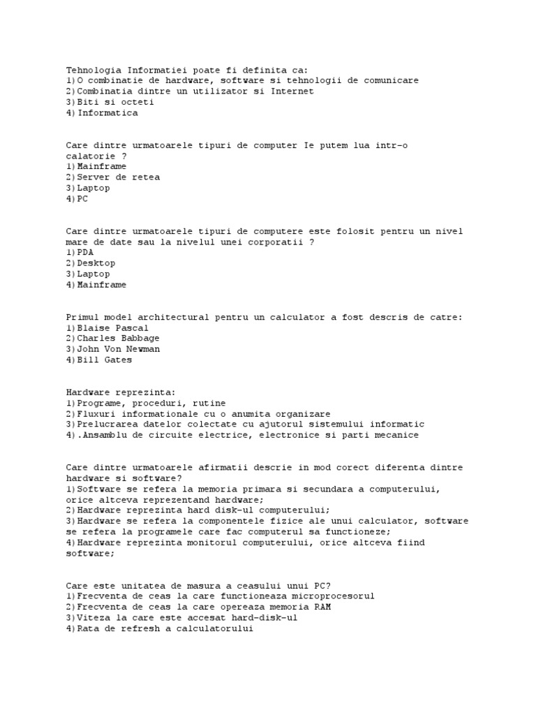 1)O combinatie de hardware, software si tehnologii de comunicare