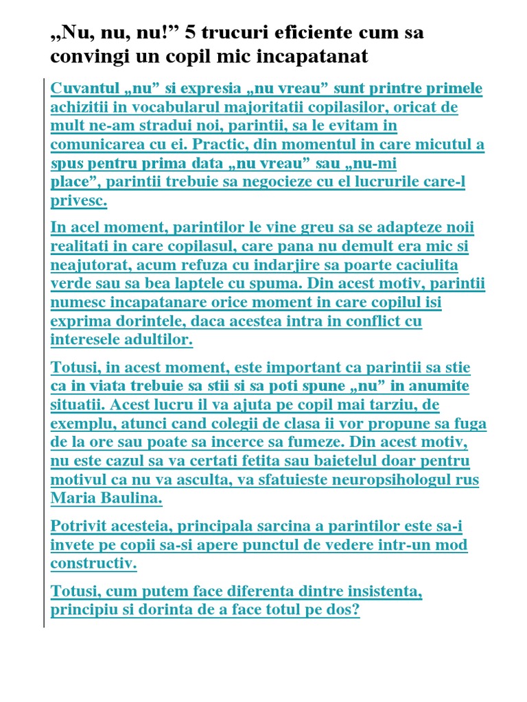 copilului. De exemplu, poti spune: „Nu, nu voi, nu merge,