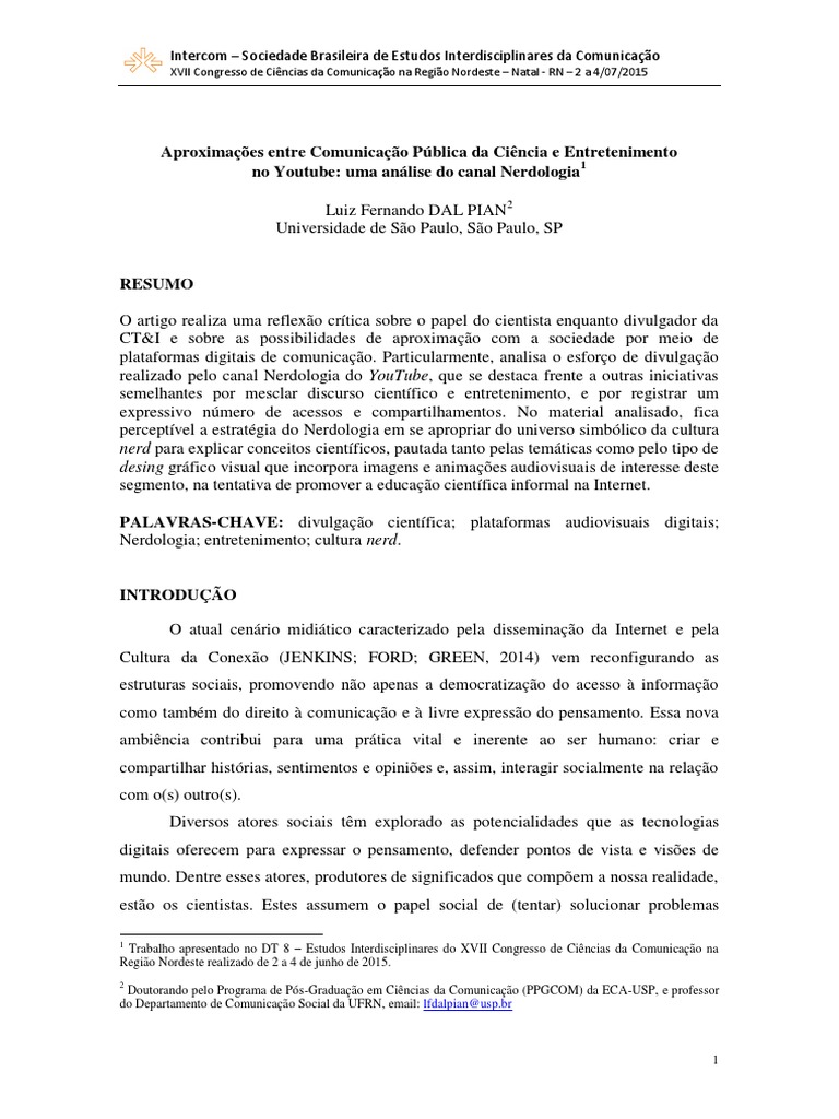 no Youtube: uma análise do canal Nerdologia1