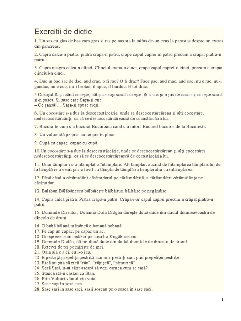 Aceste exerciții de dicție sunt extrase din Cursul de Dicție susținut de Dana Rotaru