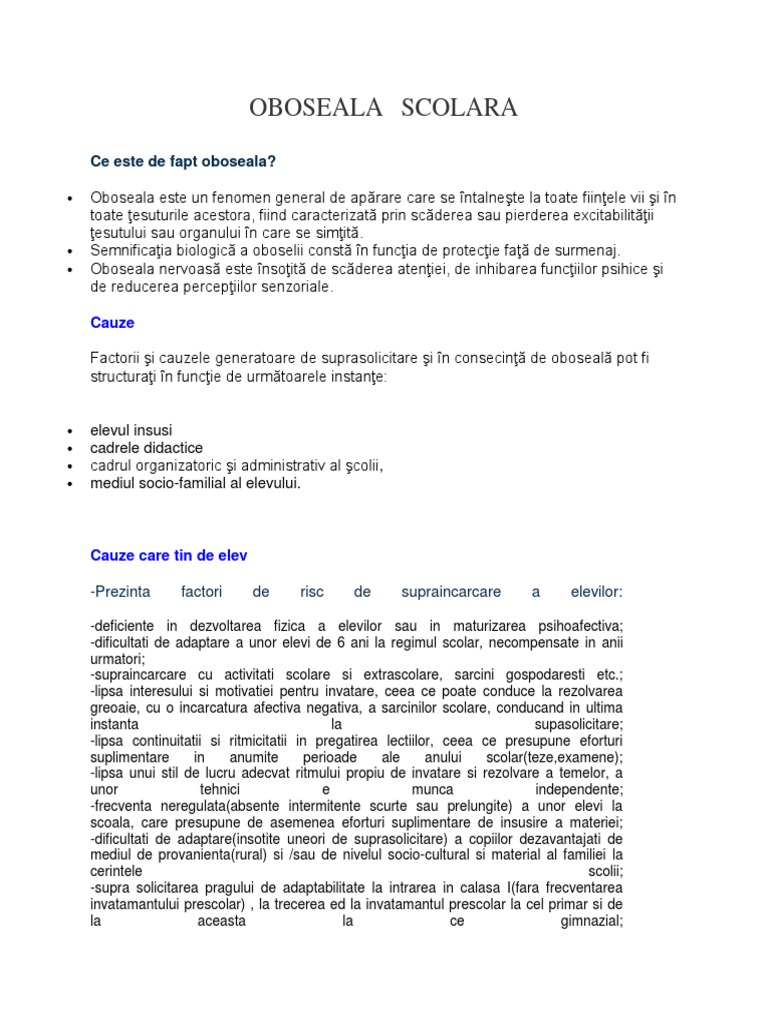 surmenajul sau oboseala cronica, care necesita intreruperea activitatilor scolare mai multa