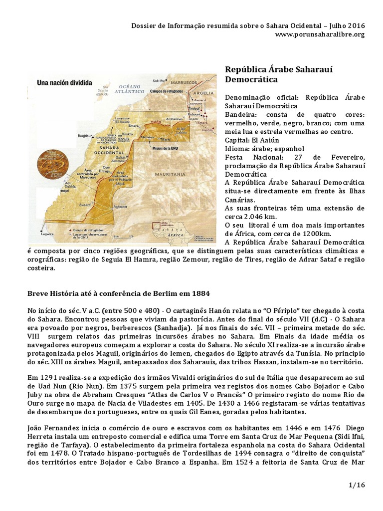 Dossier de Informação resumida sobre o Sahara Ocidental – Julho 2016