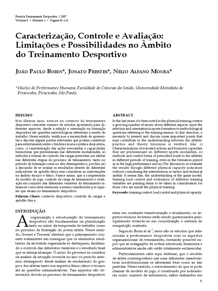 Nesse sentido, verifica-se que ao observar produ- ção científica na área do treinamento desportivo pode- se perceber nos diferentes periódicos nacionais e inter- nacionais, de uma maneira geral, ausência do detalhamento de todo o treinamento aplicado, referen-