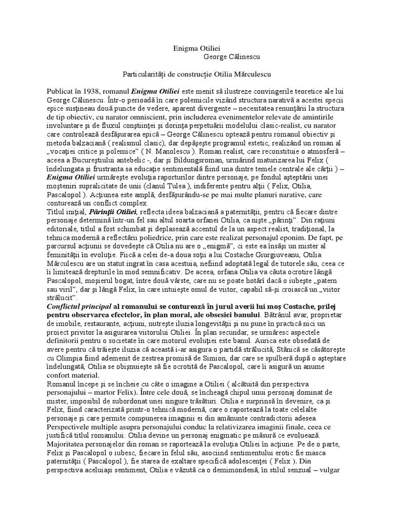 parcursul acţiunii se dovedeşte că Otilia nu are o „enigmă”, ci este ea însăşi un mister al