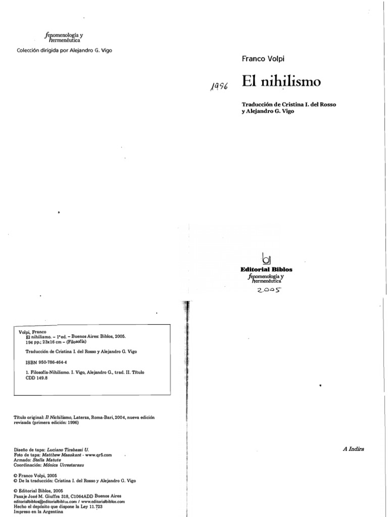 El nihilismo. - 1" ed. - Buenos Aires: Biblos, 2005.