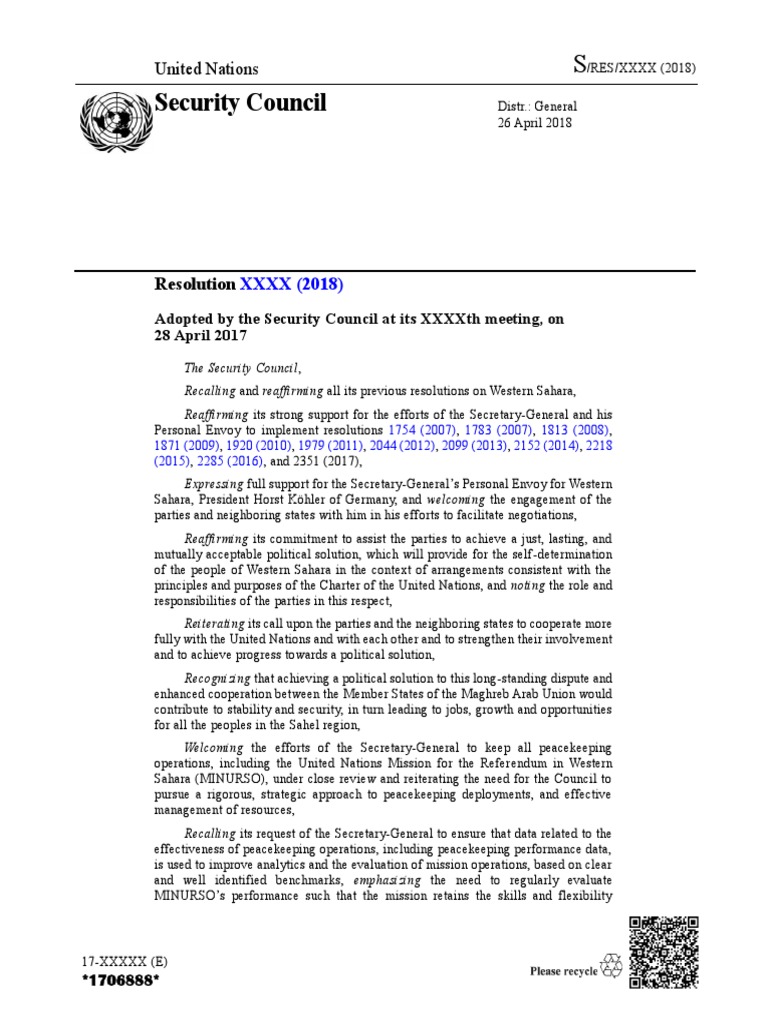 1. Decides to extend the mandate of MINURSO until 31 October 2018;