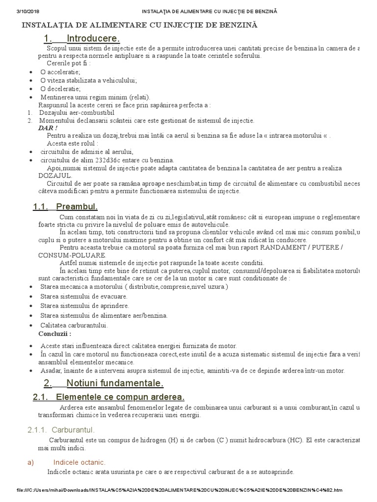 3/10/2018 INSTALAŢIA DE ALIMENTARE CU INJECŢIE DE BENZINĂ