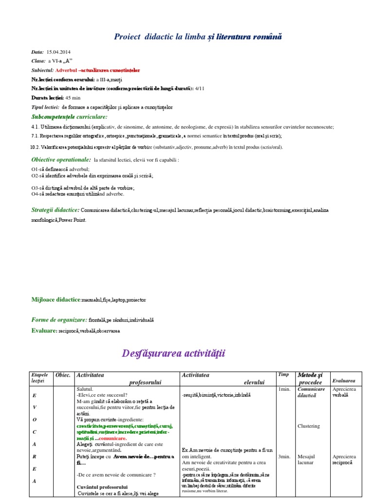 I cu titlul „ O călătorie în ţara adverbului”; sunt notați.