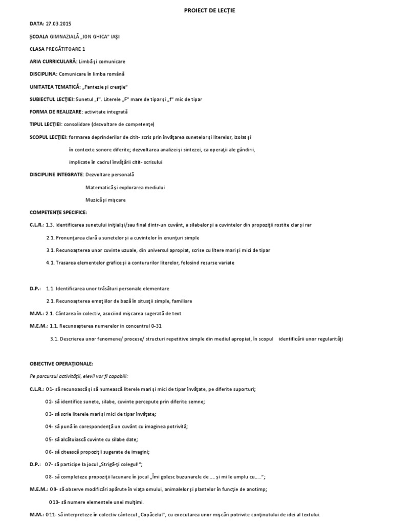 PROIECT DE LECŢIE