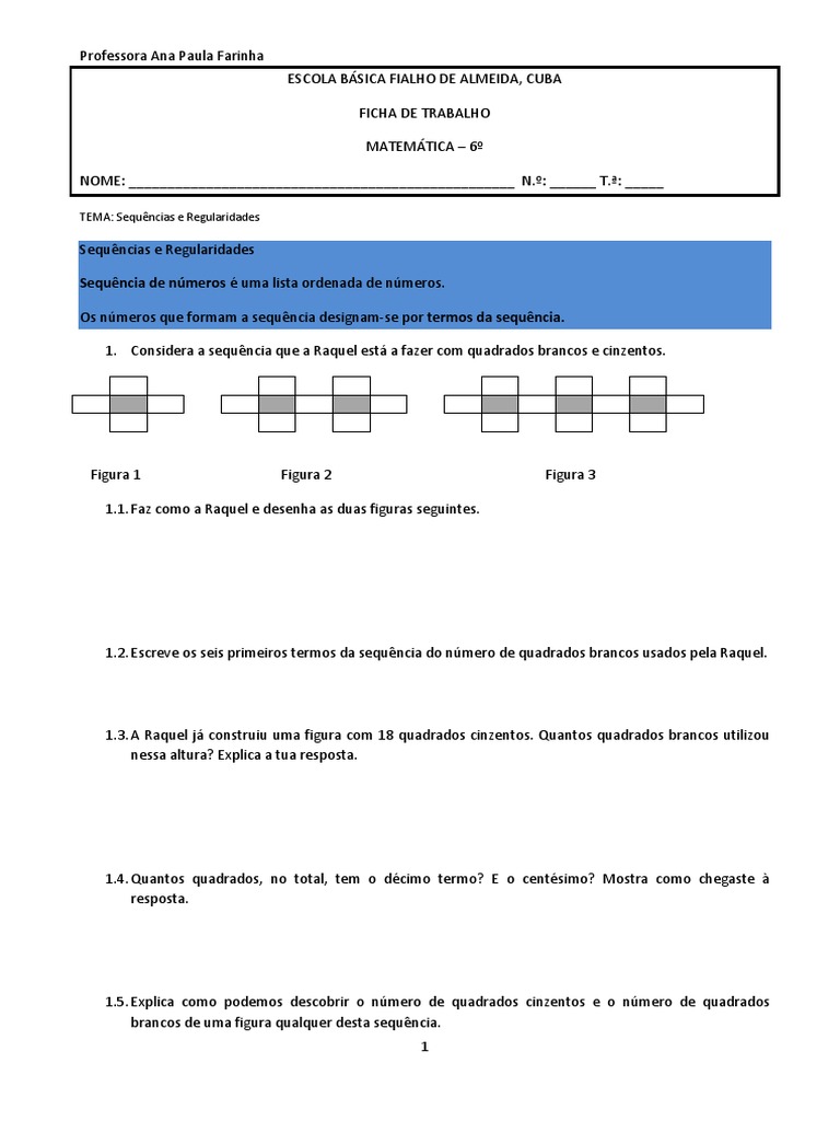 1. Considera a sequência que a Raquel está a fazer com quadrados brancos e cinzentos.