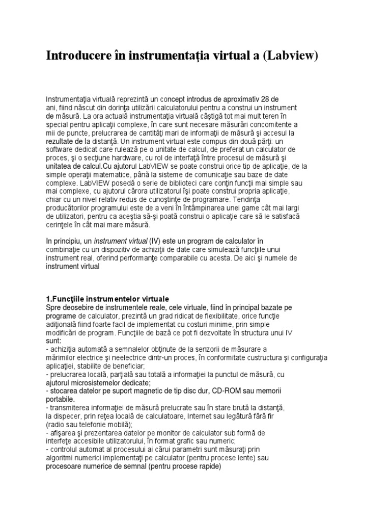 Instrumentaţia virtuală reprezintă un concept introdus de aproximativ 28 de