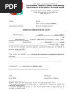 CERERE SUSȚINERE EXAMEN DE LICENȚĂ