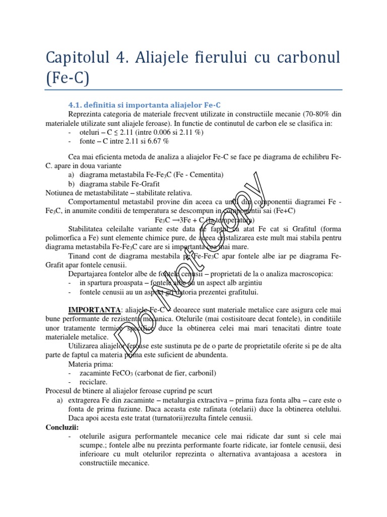 diagrama metastabila Fe-Fe3C care are si importanta cea mai mare.