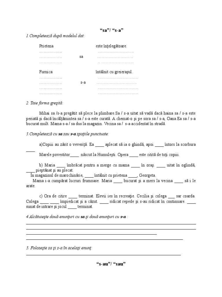 5. Foloseşte sa şi s-a în acelaşi enunţ: