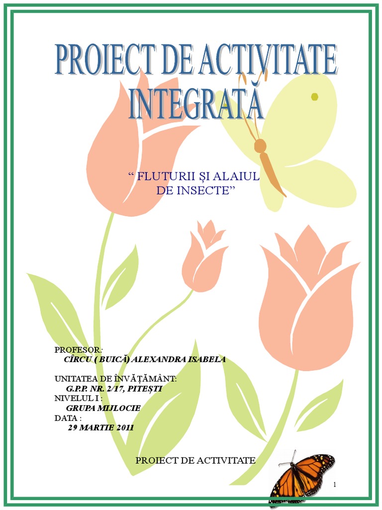SUBTEMA ACTIVITĂȚII: „FLUTURI ȘI ALAIUL DE INSECTE”