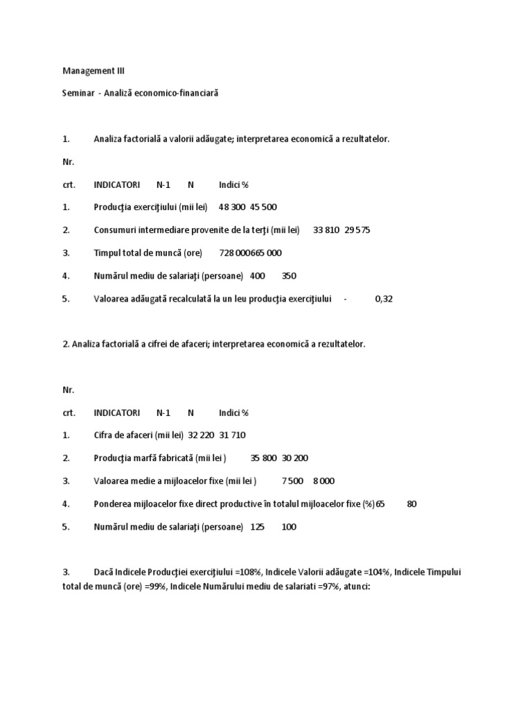 Seminar - Analiză economico-financiară