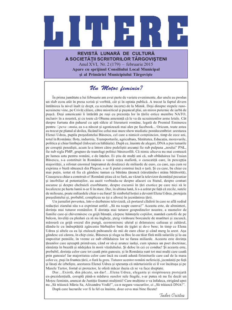Anul XVI, Nr. 2 (179) februarie 2015