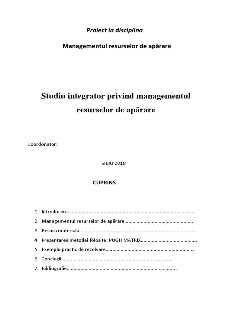 Managentul resurselor apărării reprezintă parte componentă a managementului