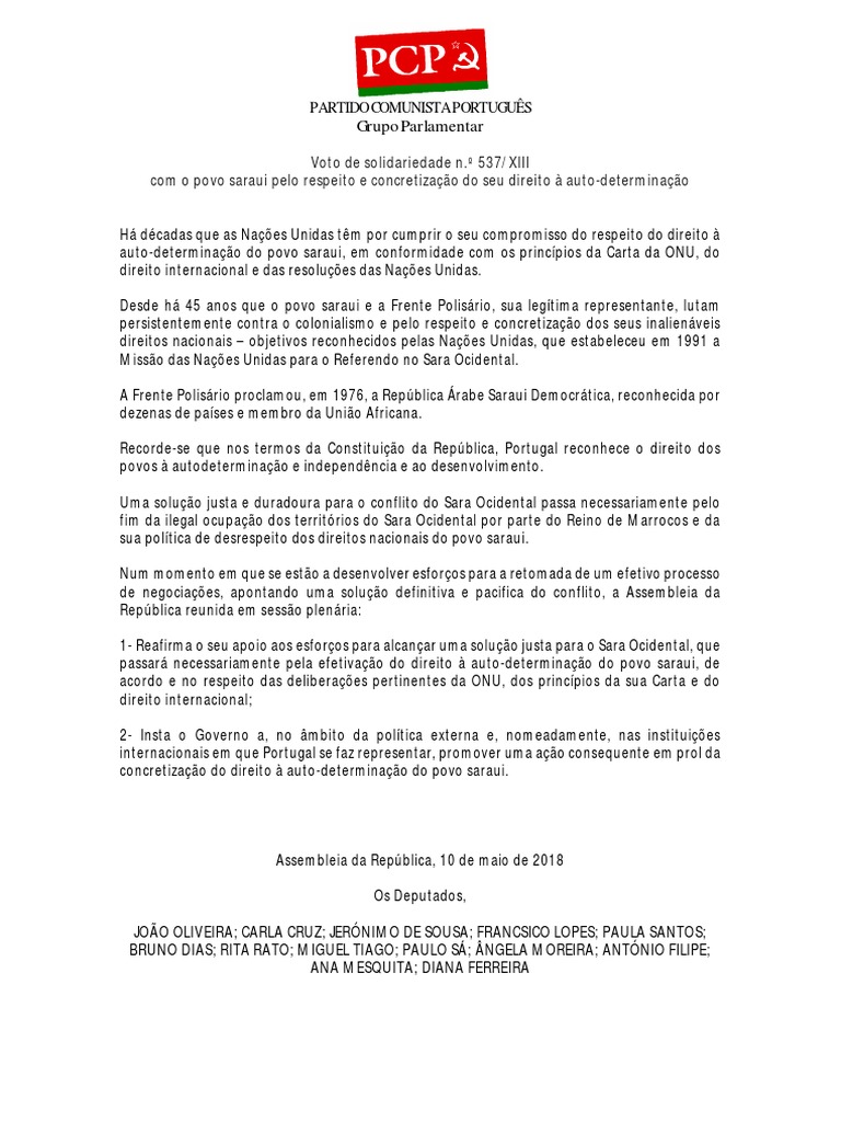 1- Reafirma o seu apoio aos esforços para alcançar uma solução justa para o Sara Ocidental, que