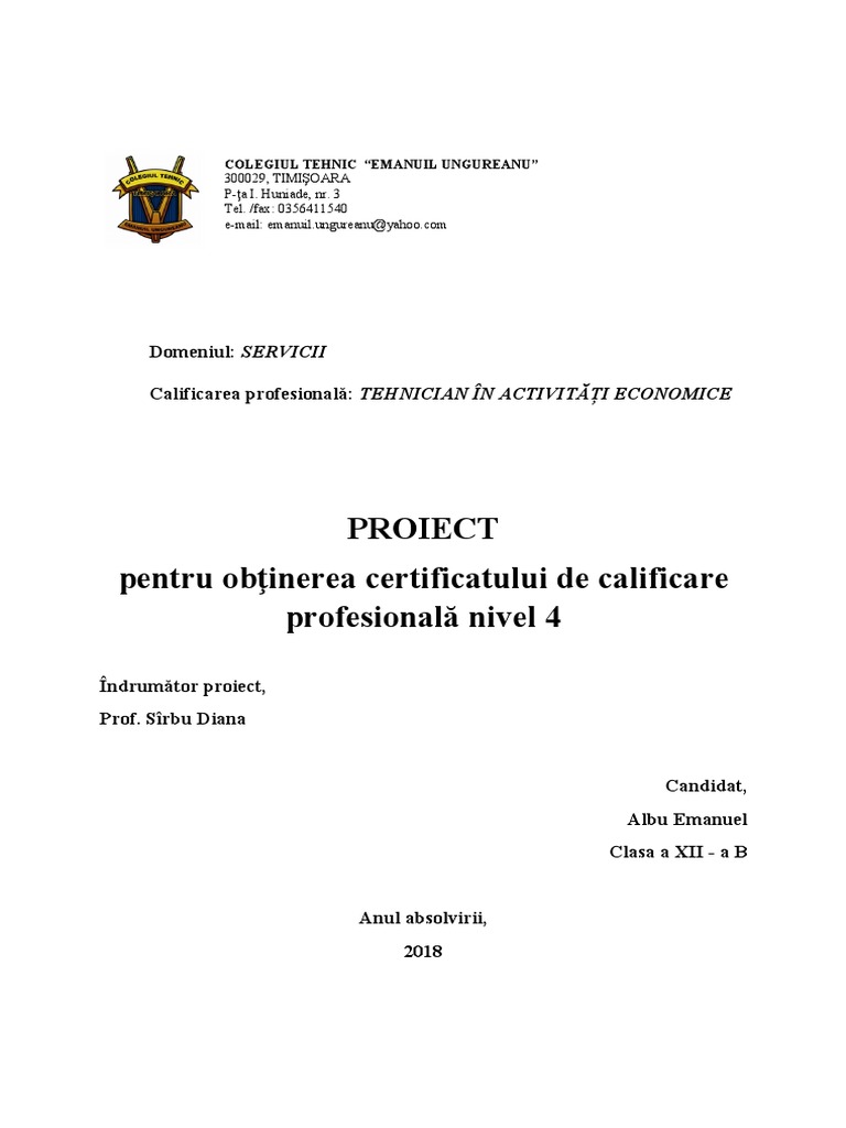 Calificarea profesională: TEHNICIAN ÎN ACTIVITĂȚI ECONOMICE