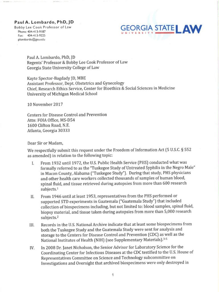 both the Tuskegee Study and the Guatemala Study were sent for analysis and