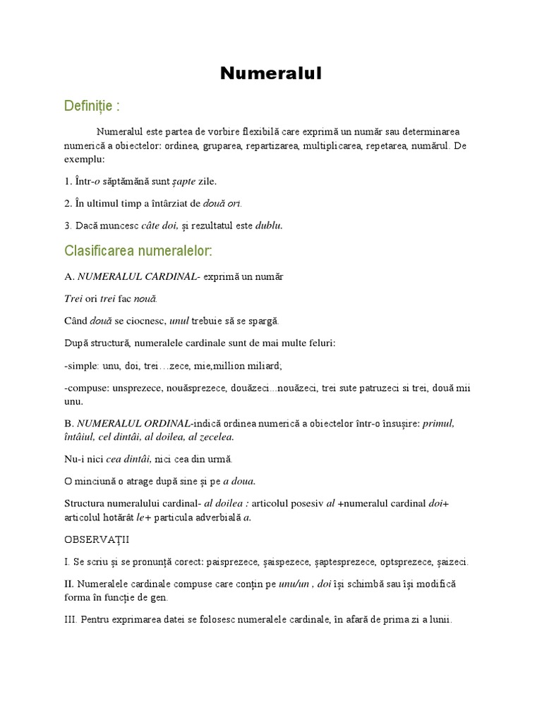 Clasificarea numeralelor: