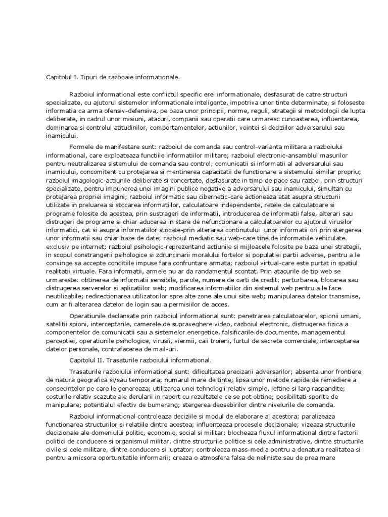 Capitolul I. Tipuri de razboaie informationale.