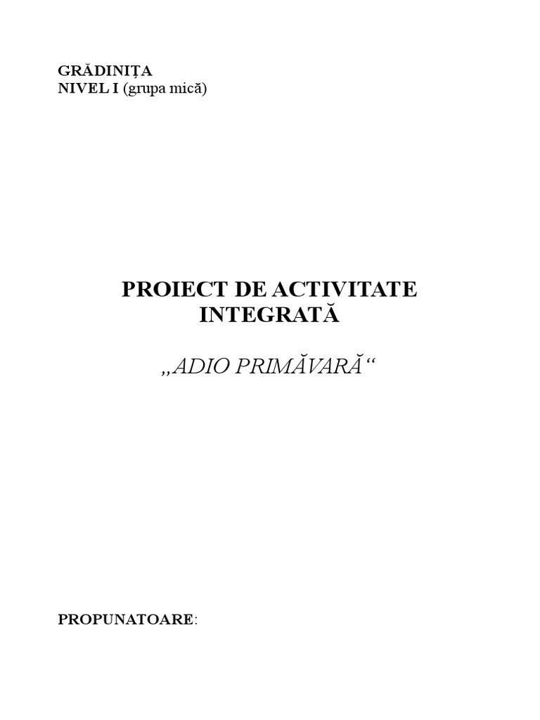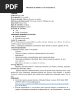 PROIECT DE ACTIVITATE INTEGRATĂ