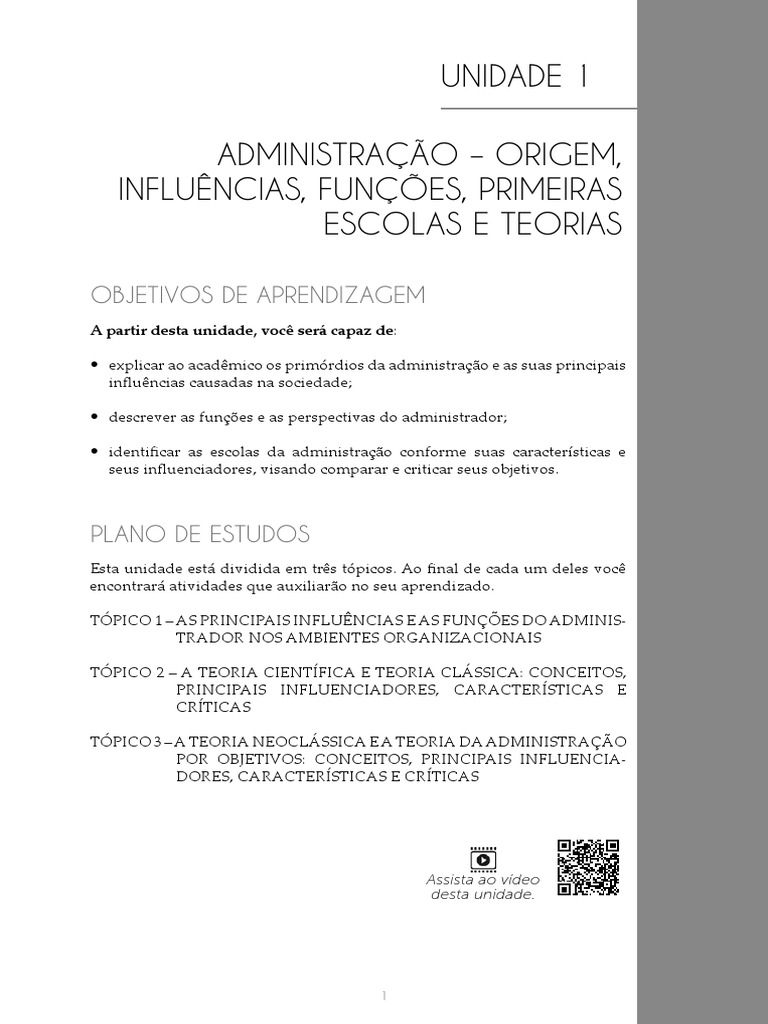 UNIDADE 1 | ADMINISTRAÇÃO – ORIGEM, INFLUÊNCIAS, FUNÇÕES, PRIMEIRAS ESCOLAS E TEORIAS