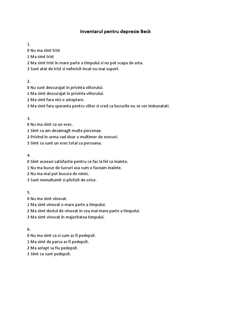 Dupa completarea chestionarului, adaugati scorul pentru fiecare din cele 21 de intrebari tinand
