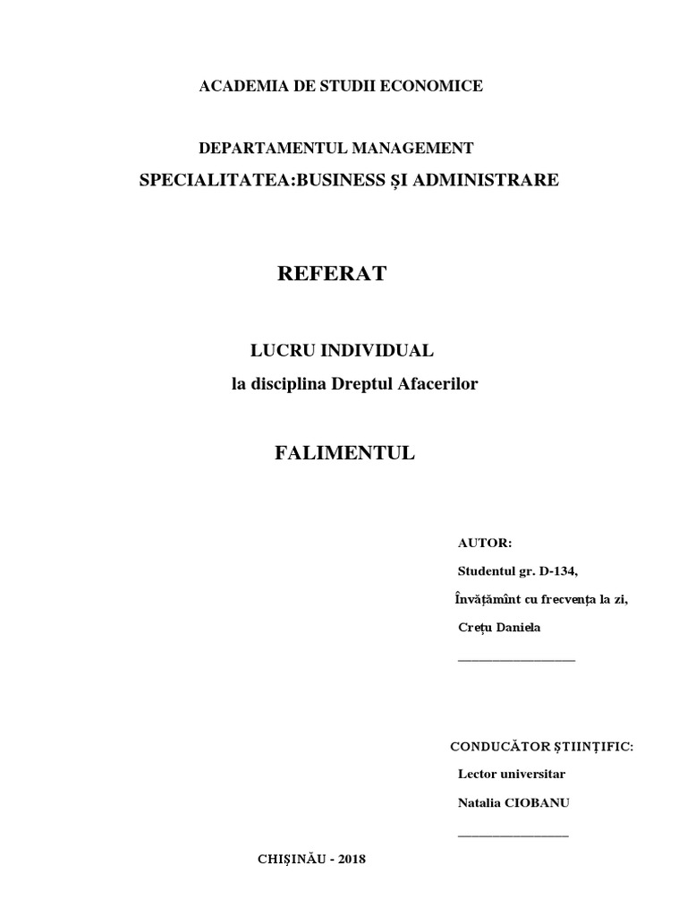 3. Furdui Viorel, "Falimentul - concept şi reglementări actuale", Chişinău,Ed. TISH,