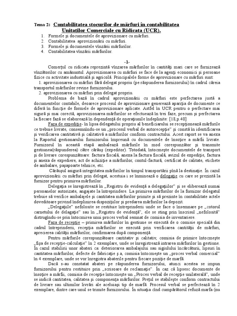 diferă în funcţie de formele de aprovizionare aplicate. Astfel în UCR pentru o perfectare mai