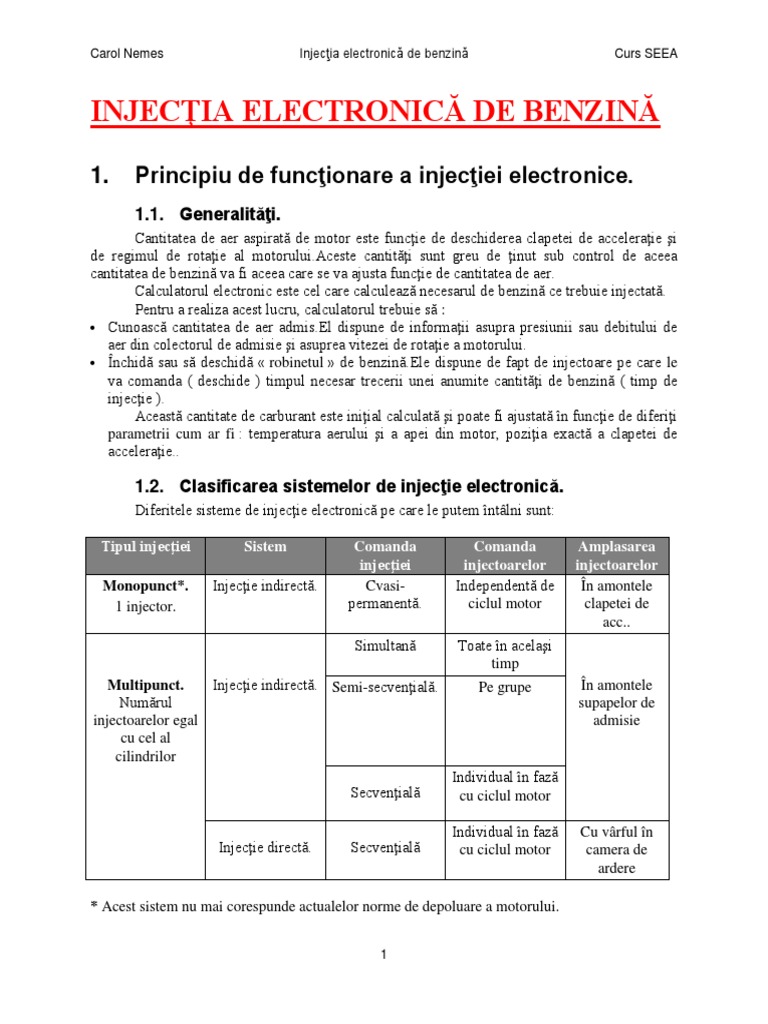 1. Principiu de funcţionare a injecţiei electronice. ..................................................................................... 1