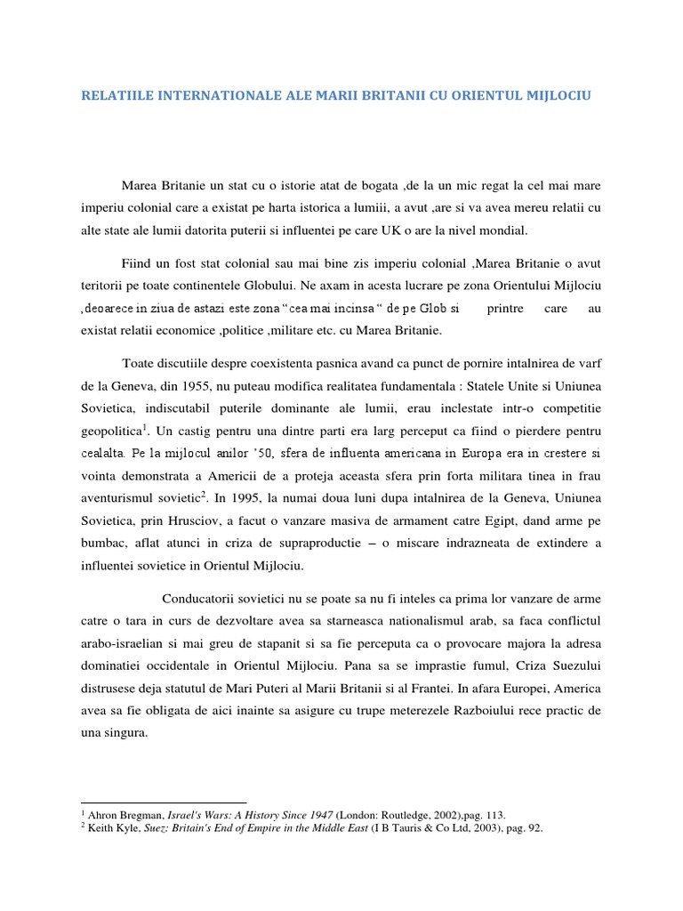 RELATIILE INTERNATIONALE ALE MARII BRITANII CU ORIENTUL MIJLOCIU