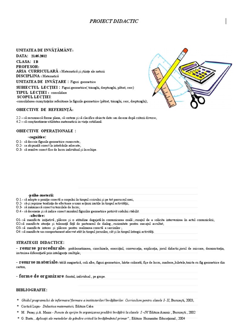 obiectivelor lucram cu figurile geometrice